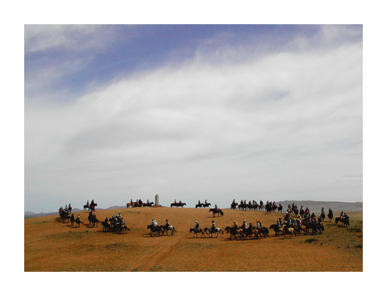 만투하이 기념비를 돌고 있는 말타기 팀. 마치 기념비를 호위하고 있는 듯 하다. |