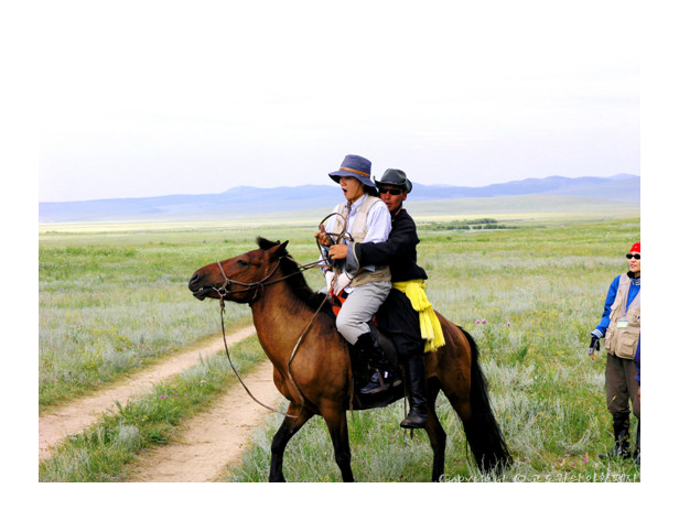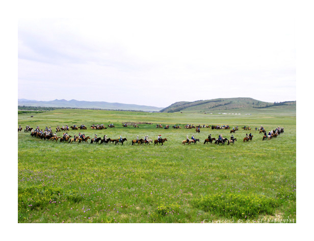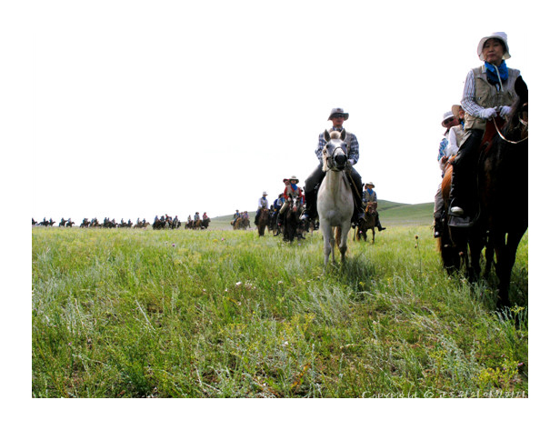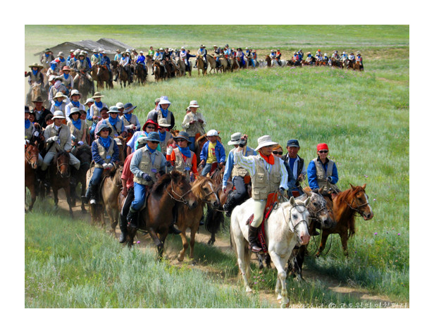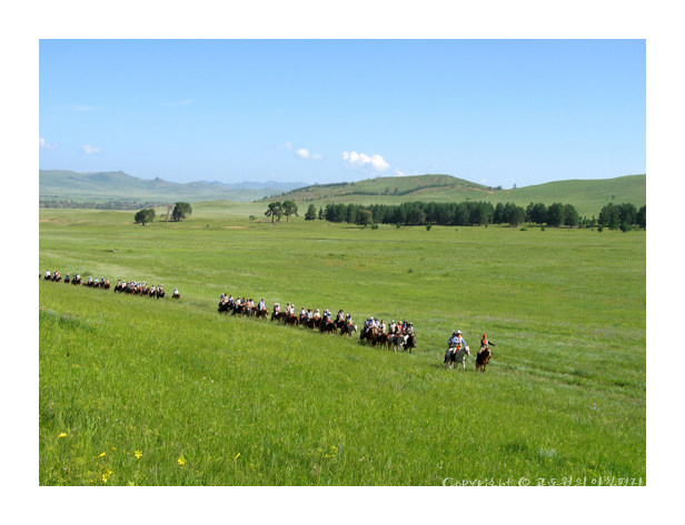 파아란 하늘 아래 푸른 초원을 말을 타고 걷고 있다.