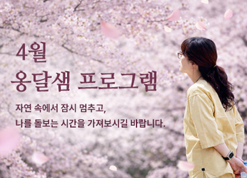 향기가 짙어지는 4월,깊은산속 옹달샘에서 몸과 마음을 쉬어가는 시간을 준비했습니다.