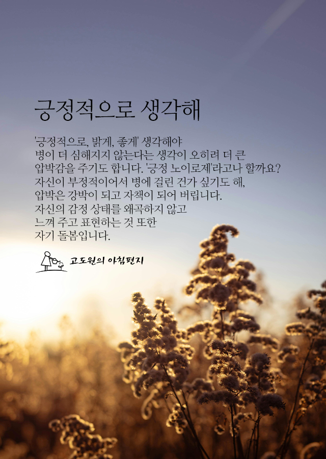 * '긍정적으로, 밝게, 좋게' 생각해야