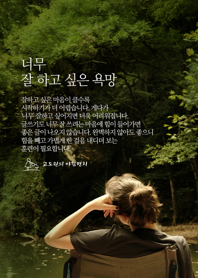 글쓰기도 너무 잘 쓰려는 마음에 힘이 들어가면