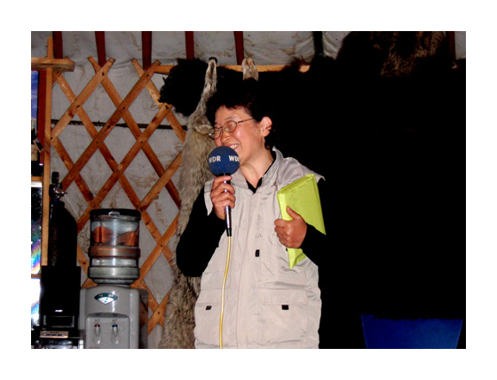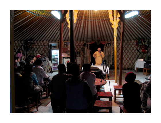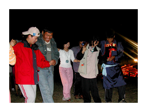 함께 춤을 추고... 몽골사람과 여행팀이 한 쌍이 되어 몽골 전통 춤을 추고 있다. |