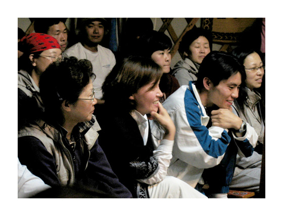 '고도원의 행복 이야기'를 열심히 듣고 있는 여행팀. 표정들이 밝고도 진지하다.